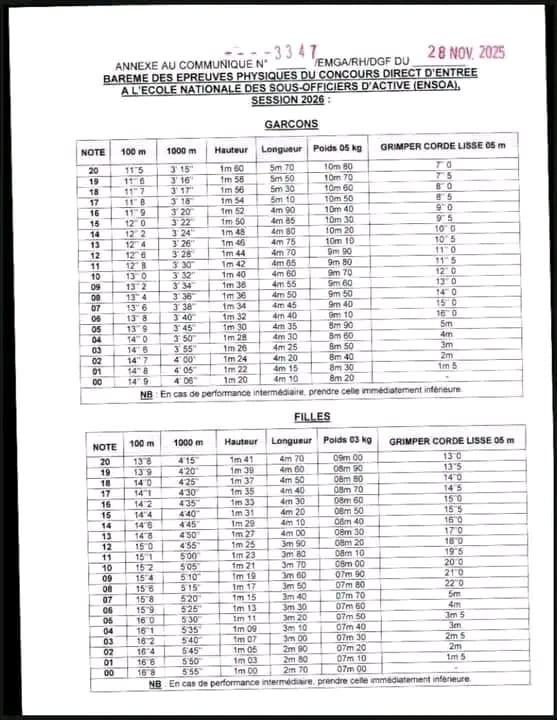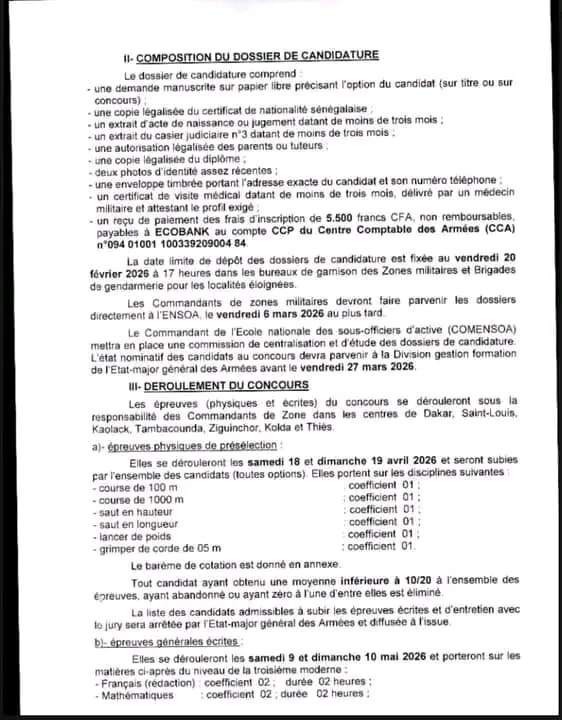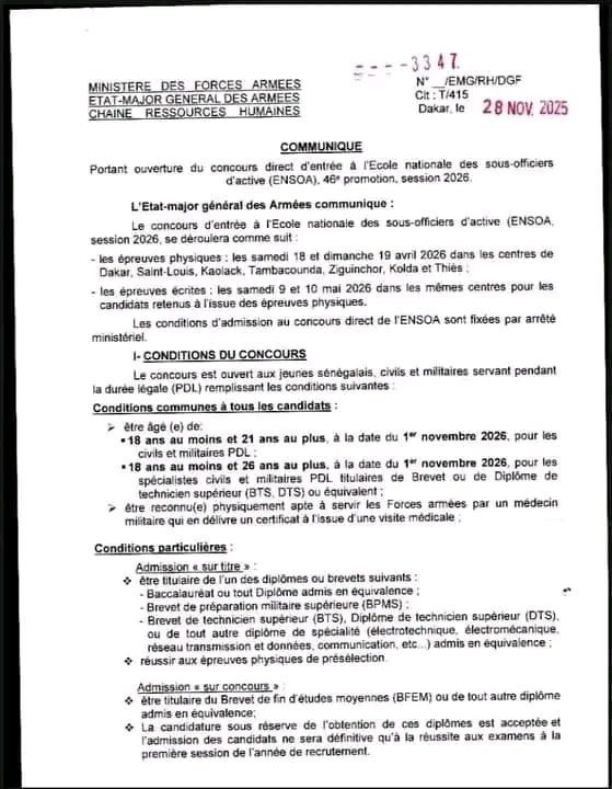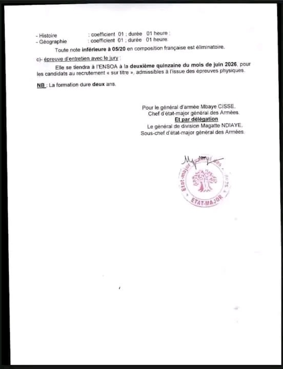 Concours d’entrée à l’ENSOA session 2025, SENEGAL